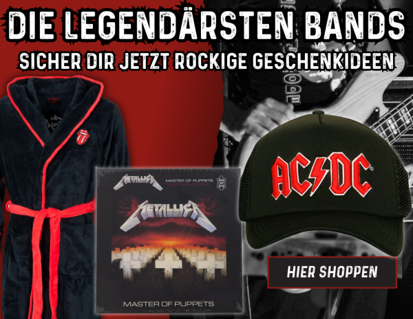 Unser Sortiment wächst stetig für dich! Von Black Sabbath über AC/DC bis zu Metallica und den Rolling Stones: Hier findest du alles, was ein echter Metal Head braucht – T-Shirts, Jacken, Mützen, Tassen und vieles mehr. Auch deutsche Bands wie Kraftklub, Volbeat und K.I.Z sind mit exklusivem Merchandise dabei.
