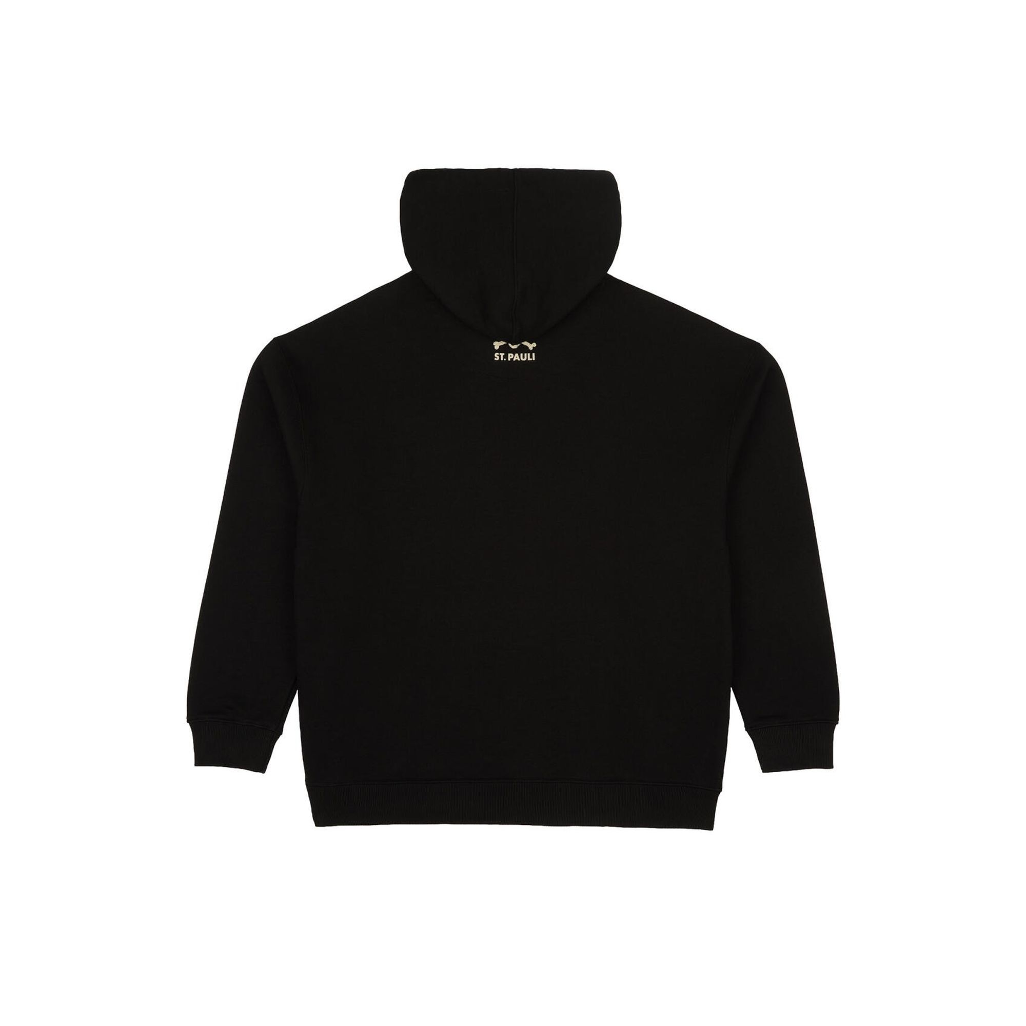 - Schwarzer Oversize-Kapuzenpullover mit Leo-Print "SANKT PAULI" Schriftzug in Gold auf der Brust