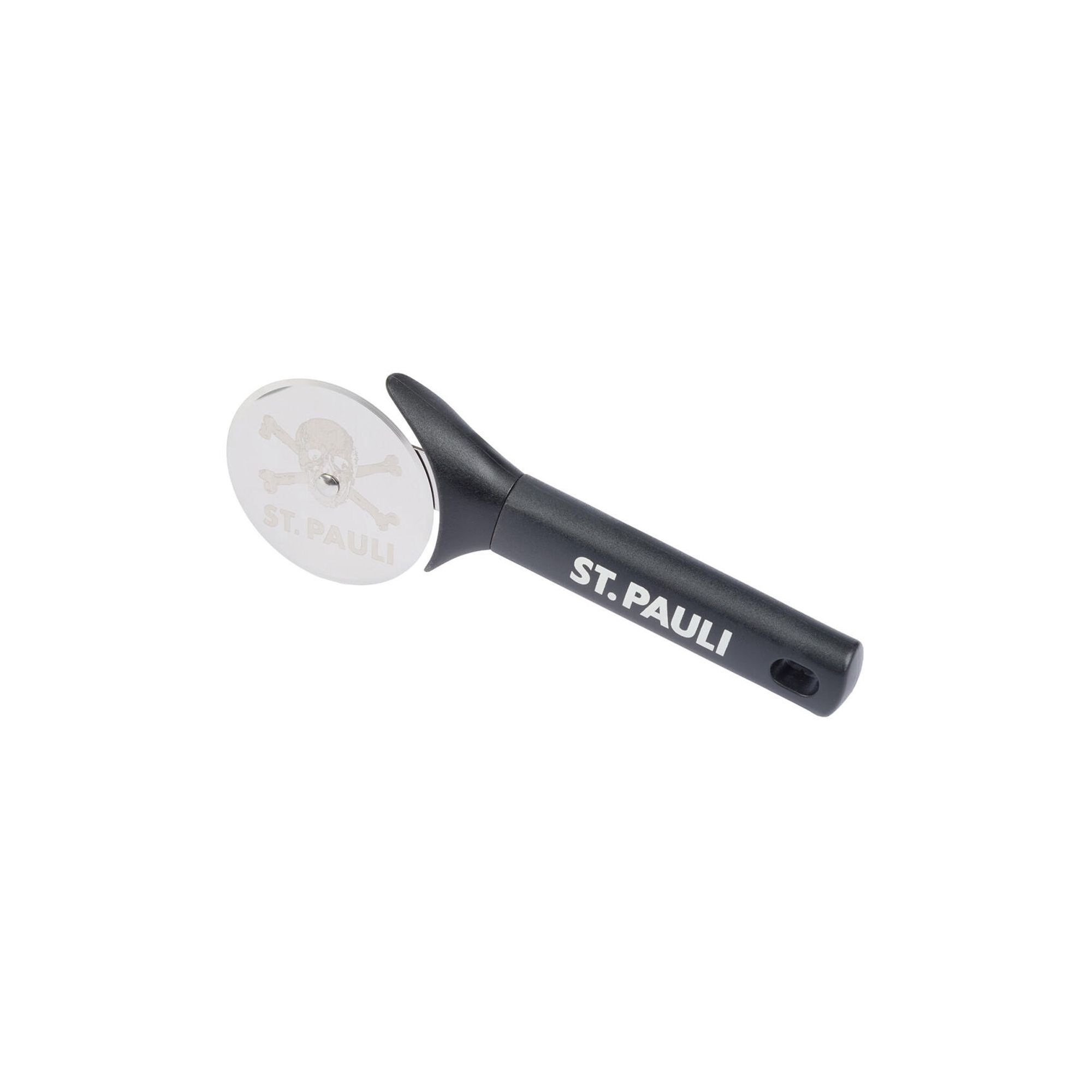 - Pizzaschneider mit rundem Schneidrad aus Edelstahl und eingebranntem Totenkopf-Motiv sowie "ST. PAULI" Schriftzug