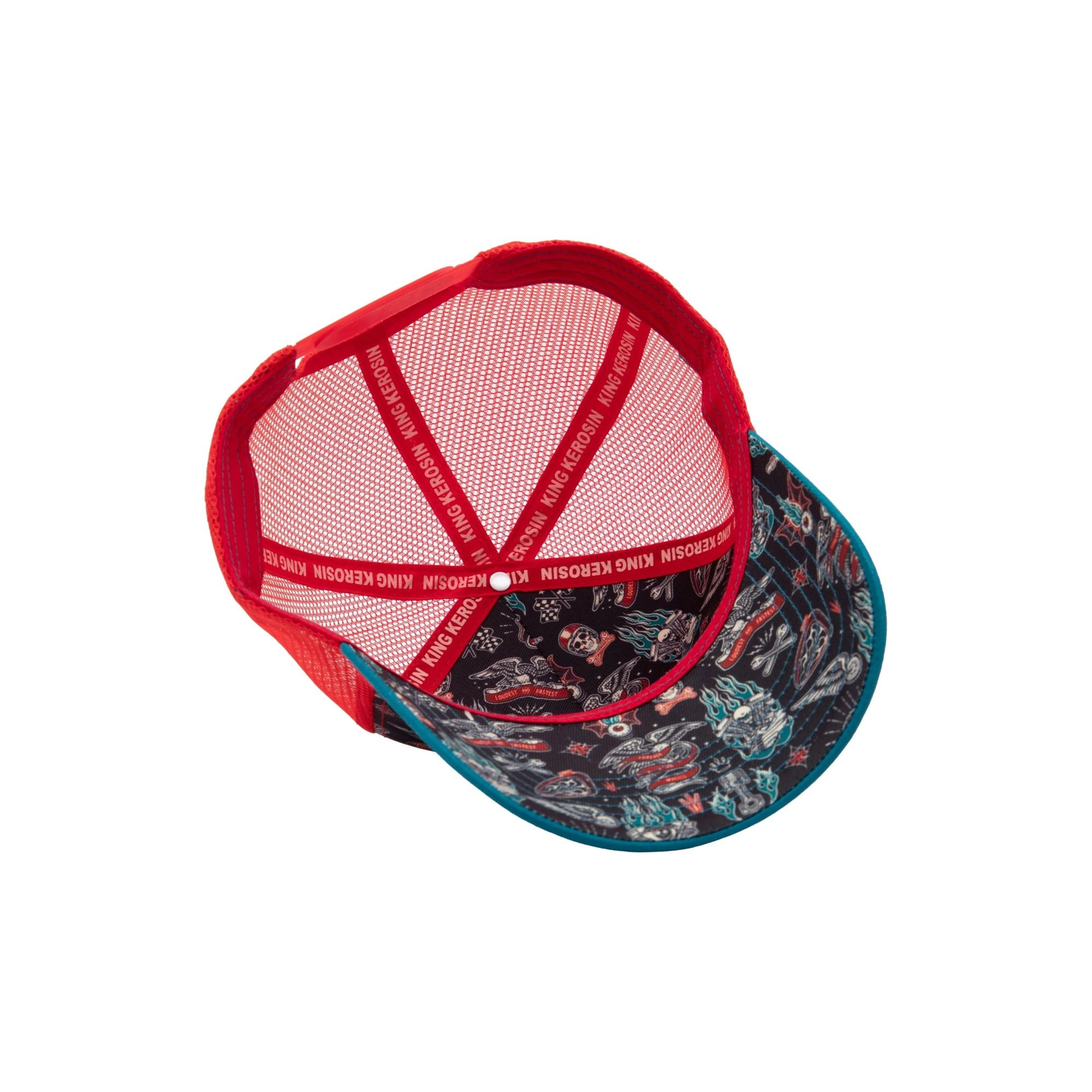 Mit der King Kerosin Trucker Cap „Ride Hard“ bringst du Kustom-Kulture direkt auf den Kopf. Das kraftvolle „RIDE HARD“-Statement als markante 3D-Stickerei trifft auf einen detailreichen Allover-Print im Tattoo-Style – mit Flammen, Totenkopf-Motiven und jeder Menge Rock’n’Roll-Attitüde.
