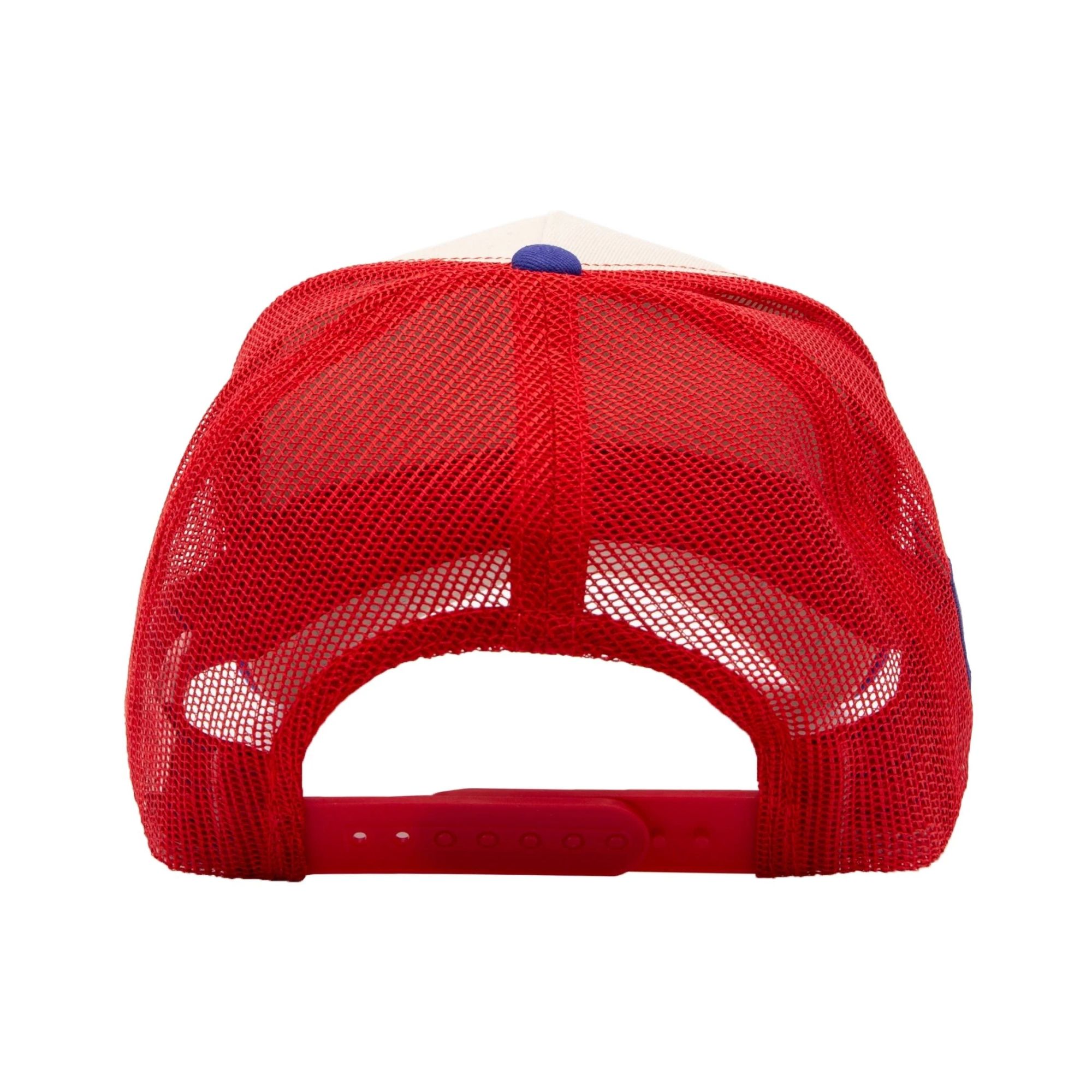 Das klassische Blockfarben-Design in Beige, Rot und Blau sorgt für starken Kontrast und einen cleanen Retro-Look, der zu Jeans, Lederjacke und Sneakern genauso passt wie zu Festival-Outfits. Für angenehmes Tragegefühl sorgt die luftdurchlässige Mesh-Rückseite, während der vorgebogene Schirm mit Ziernähten den typischen Trucker-Style abrundet. Dank Snapback-Verschluss lässt sich die Cap flexibel anpassen und sitzt bequem im Alltag.