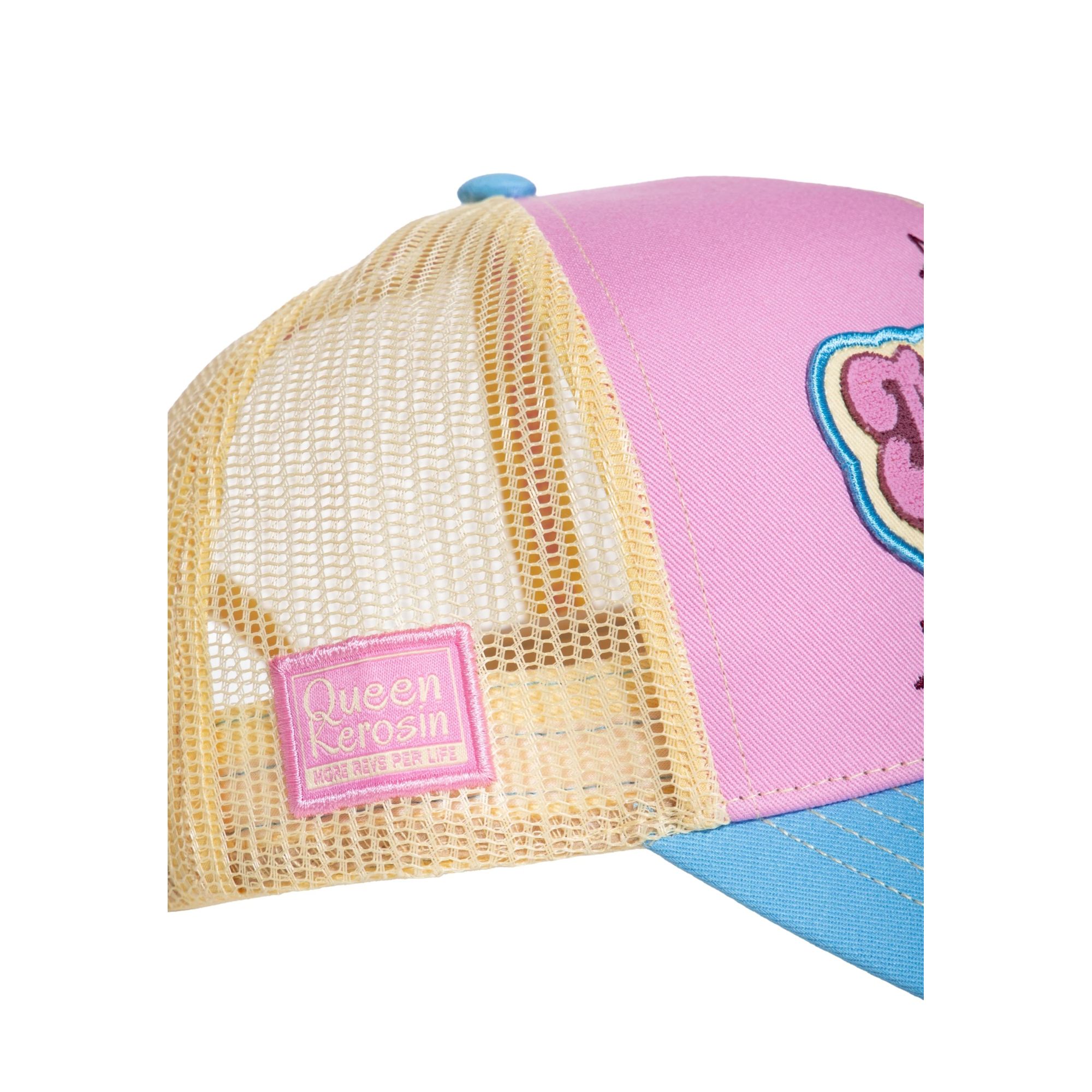 Besondere Highlights sind die liebevollen Details: ein Spruch-Detail unterm Schirm sowie eine Illustration im Inneren, die der Cap ihren einzigartigen Character geben. Für angenehmen Tragekomfort sorgt das atmungsaktive Mesh am Hinterkopf, während der Snapback-Verschluss die Weite flexibel anpasst – perfekt für Roadtrips, Sommerdays und als Eyecatcher zu Denim, Leder & Sneakern.