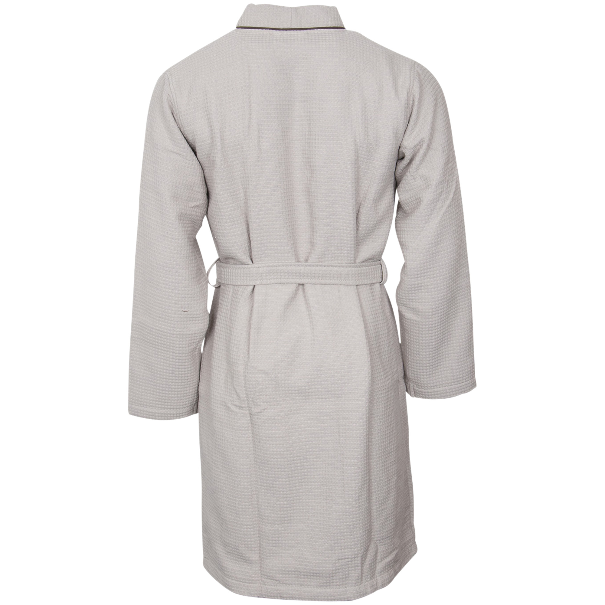 Stilecht chillen! Cremefarbener Bademantel mit braunen Details aus 100% Bio-Baumwolle im Waffelpique-Look. Mit Band zum Schnüren und zwei großen Einstecktaschen. Perfekt für Zuhause, Schwimmbad, Sauna oder zum Verschenken <3