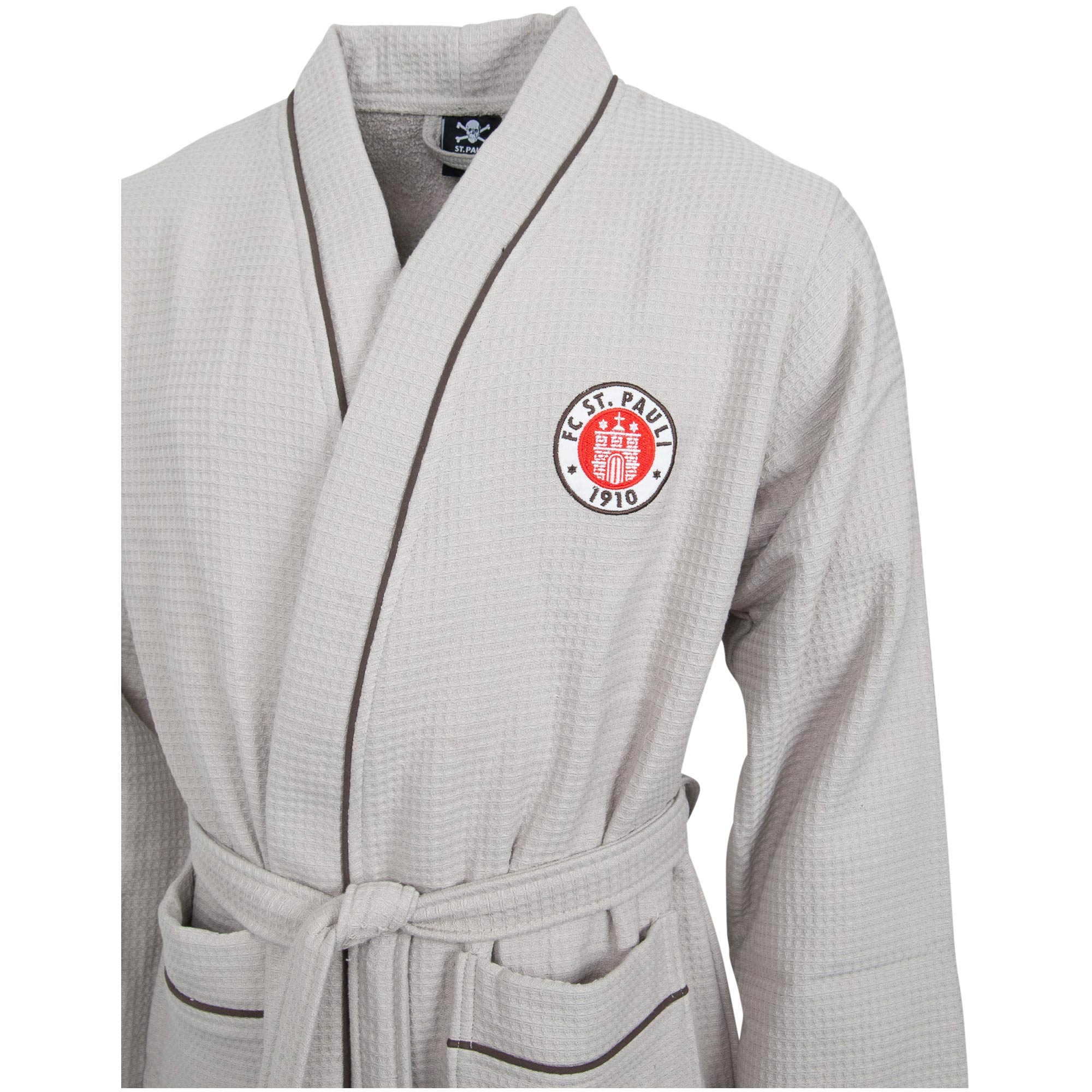 - Cremefarbener FC St. Pauli Bademantel aus Waffelpique Stoff