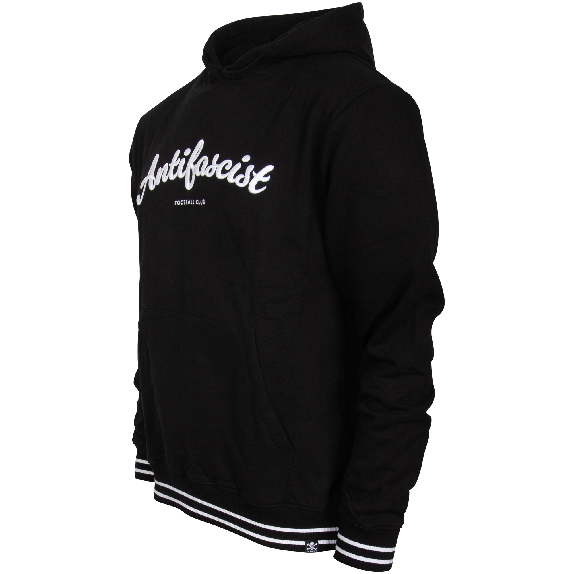 Antifascist Football Club. Wir sind mehr als ein Fußballverein und das ist auch gut so! Der schwarze, aus 100% Baumwolle bestehende, stylische und bequeme Hoodie mit 3D Stick hat ein klares Statement. Um dies zu gut wie möglich zu zeigen, ist er mit einem dreidimensionalen Antifascist-Schriftzug zentral auf der Brust bestickt. Ein absolutes Musthave für alle KiezkickerInnen! Bestelle dir jetzt deinen neuen Lieblings-Pulli bei uns im Fan Shop!