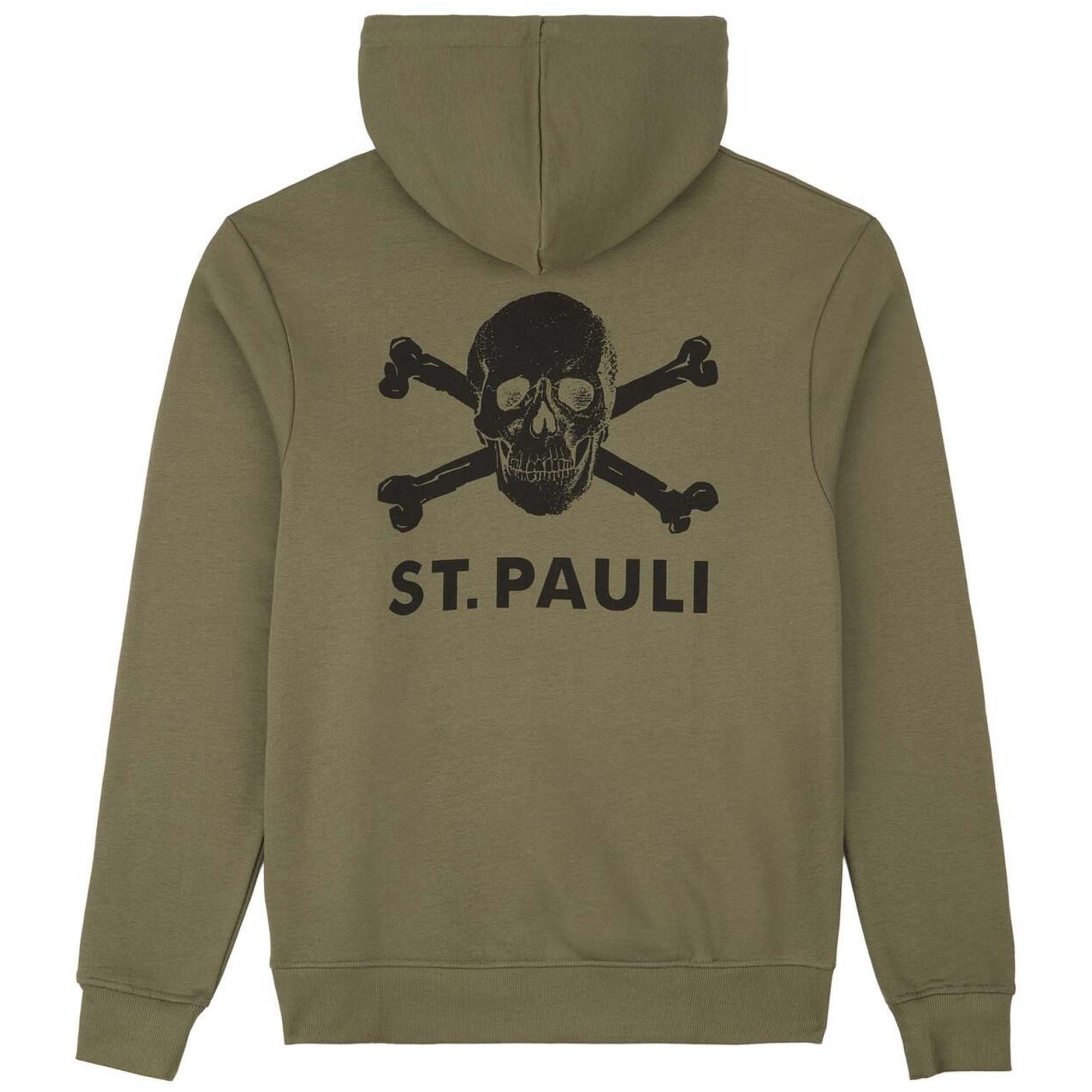 FC St. Pauli - Kapuzenpullover Black-Olive Totenkopf mit Rückenprint - oliv