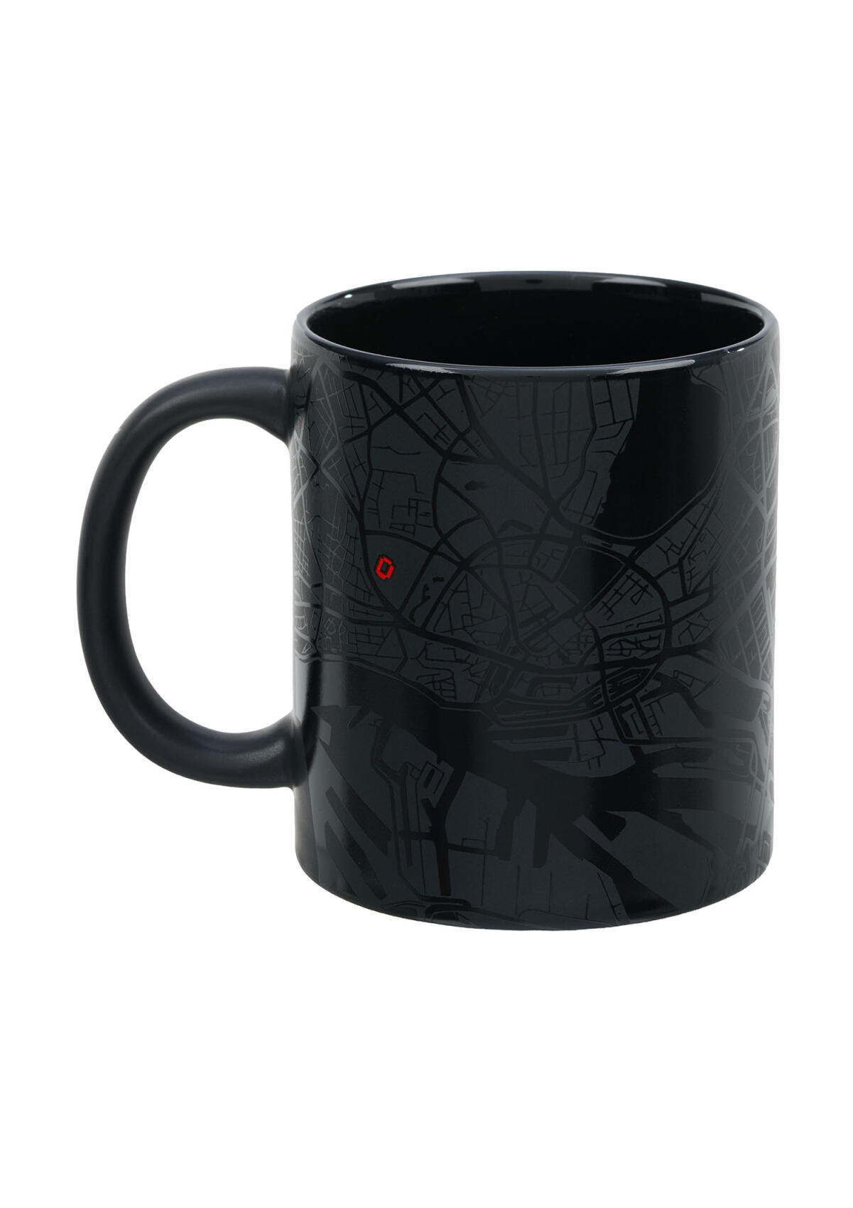 - Kaffeebecher im angesagten St. Pauli Design – Totenkopf und Stadtplan-Motiv auf schwarzem Hintergrund.